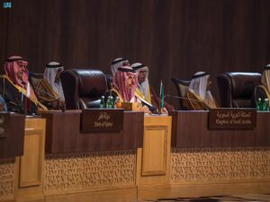 وألقى سمو وزير الخارجية رئيس وفد المملكة كلمة، أعرب فيها عن إشادة المملكة بالإرادة السياسية لجمهورية العراق والمتمثلة في عزم دولة رئيس الوزراء محمد شياع السوداني على مواجهة التحديات وتكريس الأمن والاستقرار لتحقيق طموحات وتطلعات الشعب العراقي الشقيق.