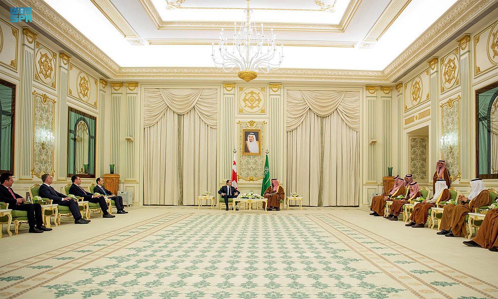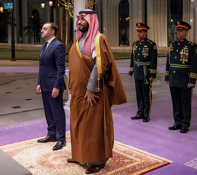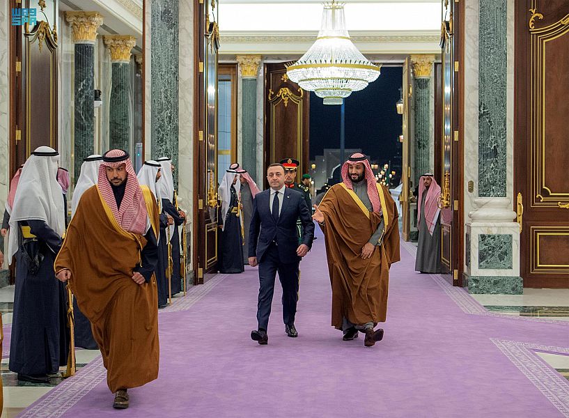 استقبل صاحب السمو الملكي الأمير محمد بن سلمان بن عبدالعزيز آل سعود ولي العهد رئيس مجلس الوزراء، في الديوان الملكي بقصر اليمامة اليوم، دولة السيد ايراكلي غاريباشفيلي رئيس وزراء جورجيا.