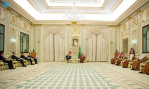 حضر جلسة المباحثات صاحب السمو الملكي الأمير تركي بن محمد بن فهد بن عبدالعزيز وزير الدولة عضو مجلس الوزراء، وصاحب السمو الأمير فيصل بن فرحان بن عبدالله وزير الخارجية، ومعالي وزير الدولة عضو مجلس الوزراء مستشار الأمن الوطني الدكتور مساعد بن محمد العيبان، ومعالي وزير البيئة والمياه والزراعة المهندس عبدالرحمن بن عبدالمحسن الفضلي، ومعالي وزير الاقتصاد والتخطيط الأستاذ فيصل بن فاضل الإبراهيم (الوزير المرافق)، وسفير خادم الحرمين الشريفين لدى جورجيا سلمان بن عبدالرحمن آل الشيخ.