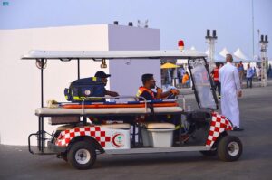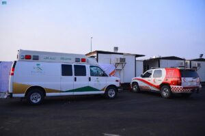 وقد رفعت الجاهزية في 98 مركزًا بمنطقة مكة المكرمة منها 24 مركزًا بمحافظة الطائف و 36 مركزًا بمحافظة جدة بكاملها و 38 مركزًا تابعًا للعاصمة المقدسة بأطقمها من أطباء وأخصائيين وفني إسعاف طب طواريء ، فيما بلغت عدد الآليات ما يقارب 114 آلية ما بين سيارات إسعاف وآليات الكوارث والأزمات بالإضافة إلى الإسعاف الجوي الذي يدعم الخدمات الإسعافية الأرضية.