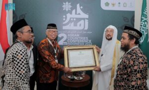 مجلس العلماء بجمهورية إندونيسيا يمنح وزير الشؤون الإسلامية وسام الاستحقاق من الطبقة الأولى للشخصية المؤثرة