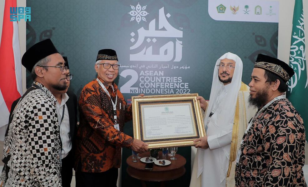 وثمن رئيس مجلس العلماء، الدور المحوري الذي تقوم به المملكة في خدمة الإسلام والمسلمين بالعالم وخدمة ضيوف الرحمن وتقديم التسهيلات لهم، مشيداً بنجاح وتميز أعمال المؤتمر الدولي آسيان الثاني ” خير أمة ” الذي تنظمه المملكة ممثلة بوزارة الشؤون الإسلامية ويناقش محاور مهمة في تعزيز مفاهيم الخيرية في الأمة الإسلامية بمشاركة واسعة من العلماء بدول آسيان.