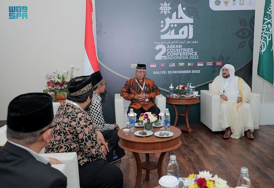 جاء ذلك خلال لقاء رئيس مجلس العلماء في محافظة بالي الشيخ محروسون بمعالي الوزير الدكتور آل الشيخ، بحضور سفير خادم الحرمين الشريفين بجمهورية إندونيسيا عصام عابد الثقفي، وذلك على هامش المؤتمر الدولي آسيان الثاني لدول آسيان “خير أمة”، الذي نظمته وزارة الشؤون الإسلامية والدعوة والإرشاد، بالتعاون مع وزارة الشؤون الدينية الإندونيسية بمدينة بالي الإندونيسية.