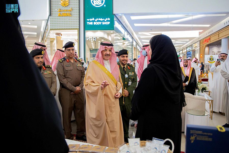 واطلع سموه على المعرض المصاحب ومشاركات النزلاء، منوها بتلك المشاركات التي تؤكد استفادة النزلاء من برامج التأهيل والتدريب التي تقام داخل السجون.