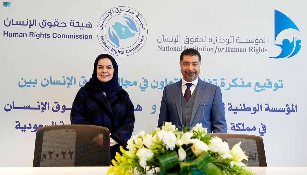 وقّعت هيئة حقوق الإنسان والمؤسسة الوطنية لحقوق الإنسان في مملكة البحرين , بمقر الهيئة في الرياض اليوم , مذكرة تفاهم للتعاون في مجال حقوق الإنسان، وقّعها من جانب الهيئة معالي رئيسة الهيئة الدكتورة هلا بنت مزيد التويجري، فيما وقّعها من جانب المؤسسة رئيسها المهندس علي أحمد الدرازي، وذلك بحضور معالي نائب رئيس الهيئة الأستاذ عبدالعزيز بن عبدالله الخيال.