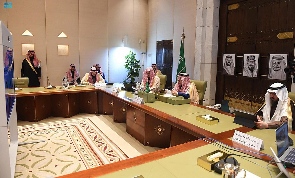 رأس صاحب السمو الملكي الأمير فيصل بن بندر بن عبدالعزيز أمير منطقة الرياض، رئيس مجلس إدارة جمعية ابن باز للتنمية الأسرية، بقصر الحكم اليوم, اجتماع الجمعية العمومية لجمعية ابن باز للتنمية الاسرية, وذلك في مكتب سموه بقصر الحكم عبر -الاتصال المرئي-.