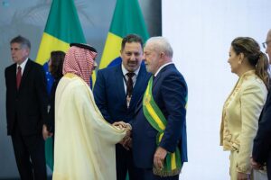 عقب ذلك حضر سموه، مراسم تنصيب الرئيس البرازيلي في القصر الرئاسي، حيث تقدم سموه بالسلام على فخامته، ونقل تحيات وتهنئة خادم الحرمين الشريفين الملك سلمان بن عبدالعزيز آل سعود، وصاحب السمو الملكي الأمير محمد بن سلمان بن عبدالعزيز ولي العهد رئيس مجلس الوزراء – حفظهما الله – بمناسبة تنصيب فخامته رئيسًا لجمهورية البرازيل الاتحادية، ولحكومة وشعب البرازيل الصديق المزيد من التقدم والنماء والازدهار.