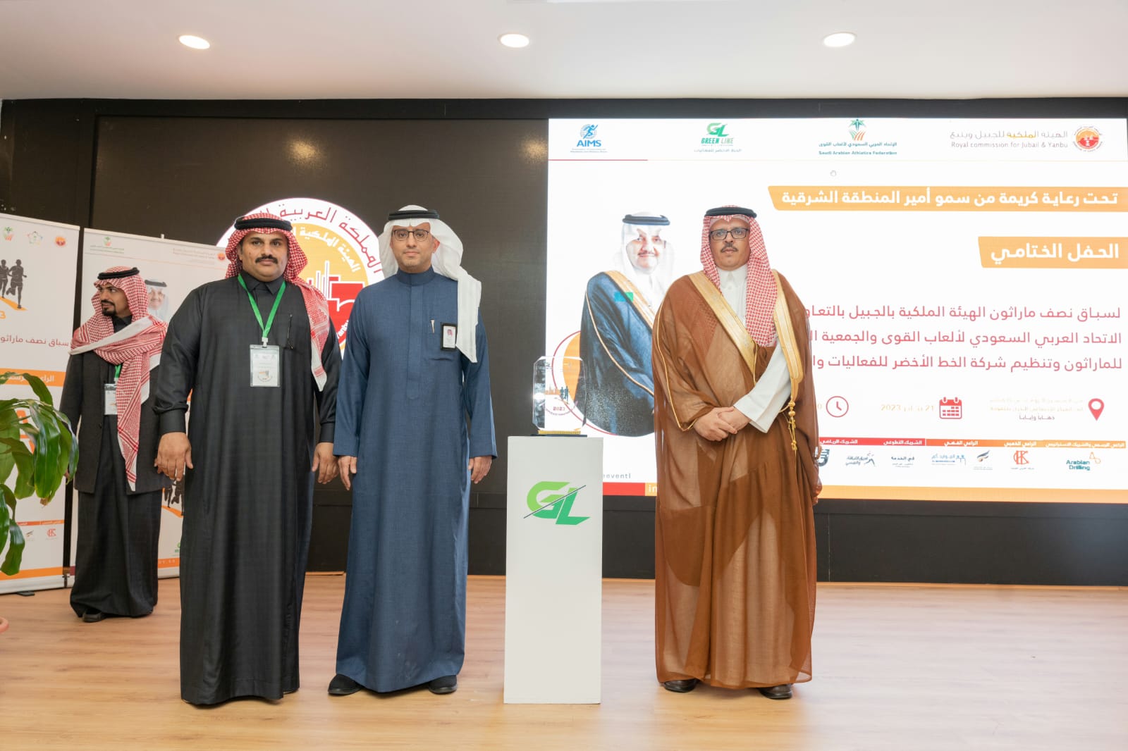 وشهد حفل سباق نصف مارثون الهيئة الملكية بالجبيل تكريم محافظ الجبيل للمشاركين والرعاة وكافة القطاعات والجهات التي ساهمت في نجاح الماراثون.