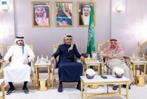 وكان في استقبال سموه بمطار الملك خالد الدولي، صاحب السمو الملكي الأمير فيصل بن بندر بن عبدالعزيز أمير منطقة الرياض، ونائب سفير دولة قطر لدى المملكة حسن بن منصور الخاطر، ومندوب عن المراسم الملكية.