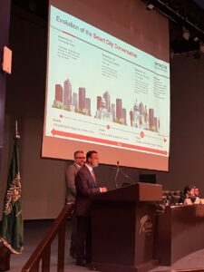 رئيس أعمال الذكاء الاصطناعي والابتكار بشركة هيتاشي المحدودة السيد أنيكيت باتانج، ورئيس المبيعات والتسويق بالمملكة العربية السعودية وأتمتة الشبكات بشركة هيتاشي للطاقة السيد أحمد أبو باشا، تحدثا على التوالي في السمنار عن كيف يمكن للمدن الذكية تعزيز السلامة والأمن وتحسين كفاءة الخدمات البلدية وتعزيز نوعية حياة أفضل للسكان، بالإضافة إلى دورها الكبير والمحوري في الحد من انبعاثات الغازات لتحقيق الحياد الكربوني من خلال استخدام مواد صديقة للبيئة. وأعقب السمنار جلسة أسئلة وأجوبة ونقاش بناء بين المحاضرين والجمهور.