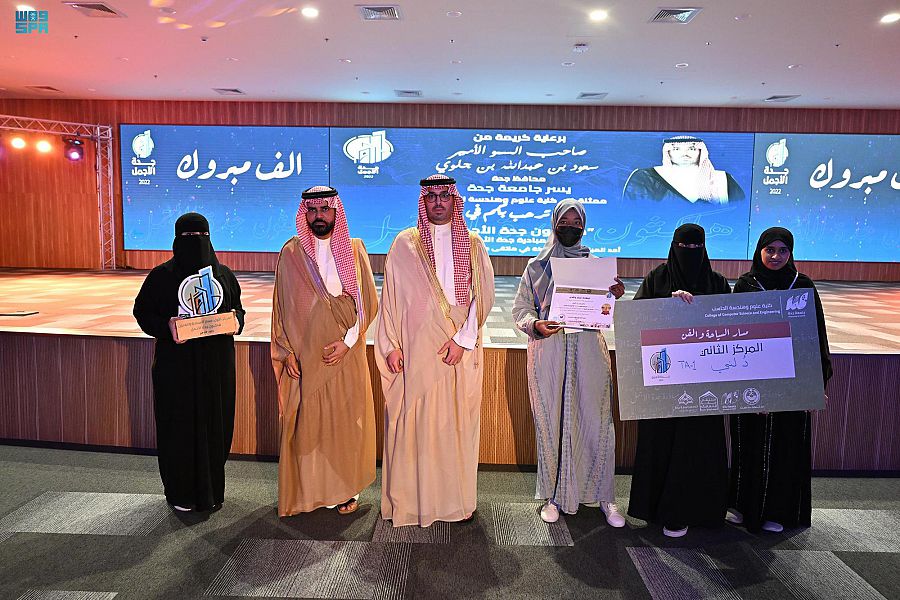وفي ختام الحفل توّج سمو محافظ جدة الفائزين بالمراكز الأربعة من أصل 160 مشاركا ومشاركة حيث حصلت جامعة الملك عبد العزيز على المركز الأول في مسار المدن الذكية، فيما حصلت جامعة الأعمال والتكنولوجيا على المركز الثاني في ذات المسار، وفي مسار السياحة والفنون حصدت جامعة جدة المركز الأول وجاءت الجامعة العربية المفتوحة في المركز الثاني.