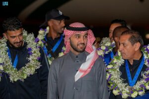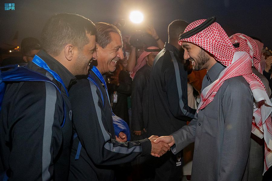 سموُّ وزيرِ الرياضة يستقبلُ بعثةَ الهلال لدى وصولها إلى مطار الملك خالد الدولي بالرياض