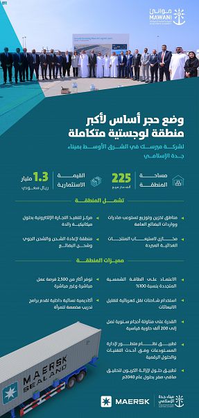 يُذكر أن “موانئ” و”ميرسك” قد وقعتا في نهاية عام 2021م الاتفاقية التي تم على إثرها وضع حجر أساس المنطقة اللوجستية المتكاملة في ميناء جدة الإسلامي؛ بما يدعم نمو صناعة الخدمات اللوجستية، ويُسهم بشكلٍ كبيرٍ في دعم النشاط الاقتصادي والتنموي ويرفع الطاقة الاستيعابية لحصة الصادرات غير النفطية بالمملكة بنسبة 50%، ويخلق فرص وظيفية متنامية في القطاع اللوجستي.
