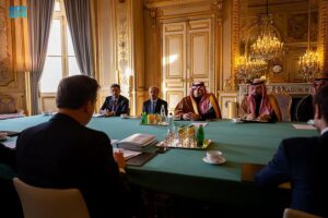 حضر الاجتماع، سفير خادم الحرمين الشريفين لدى الجمهورية الفرنسية فهد بن معيوف الرويلي.