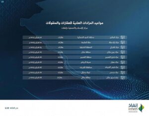 “إنفاذ” يقيم 19 مزادًا لتصفية أكثر من 150 أصلاً من العقارات والسيارات