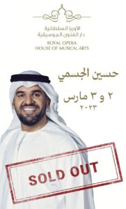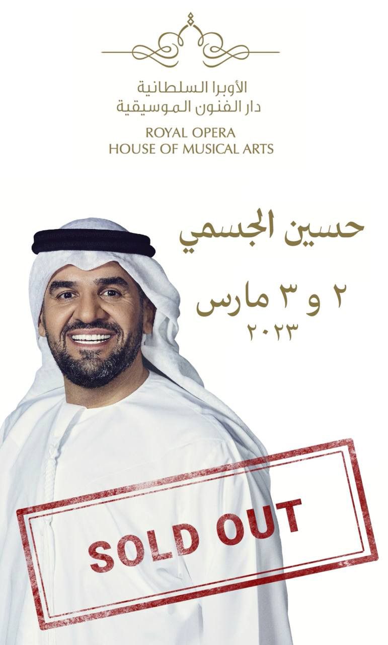 أعلن الموقع الرسمي لـ”دار الأوبرا السلطانية مسقط” دار الفنون في سلطنة عُمان، عن نفاد جميع تذاكر حفلي “جبل الأغنية العربية” الفنان الإماراتي حسين الجسمي، وذلك بعد الإعلان عنهما ضمن قائمة الحفلات العربية للدار في العام 2023، حيث كُتب في صفحة الحجز بالموقع “نأسف لقد تم بيع جميع عروض الفنان حسين الجسمي”.