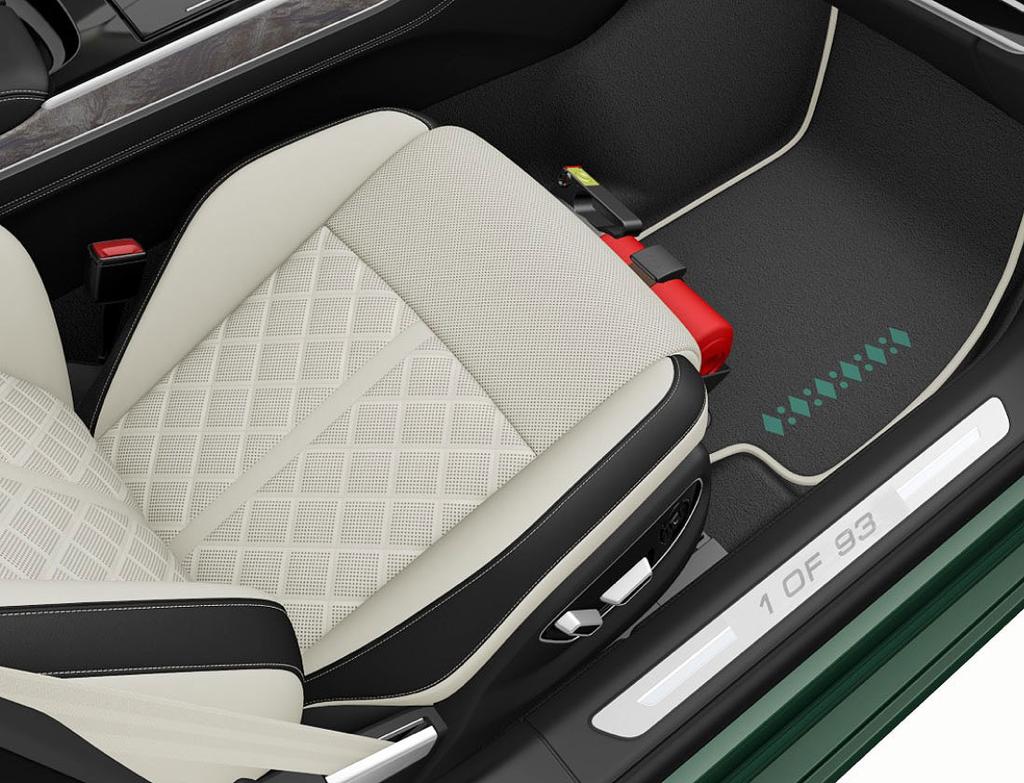 كما تتميز الطرازات الأربع والخاصة بالإصدار الخاص بالمملكة بمواصفات فريدة ، حيث يتوفر لها اللون الخارجي “Goodwood green” الحصري والمستوحى من العلم السعودي الإصدار الخاص بالمملكة يحتوي أيضا على تصميم خاص لعتبات التعريف على الأبواب، كما تم تطريز مساند الرأس بخريطة المملكة العربية السعودية. كما ازدانت فرشات الأرضية باللون الأخضر مع نقوش مستوحاة من المملكة العربية السعودية، وعلى فتحة الباب تحديداً، تُرى الإضاءة الترحيبية وكذلك النافذة الخلفية. تتميز جميع الطرازات السعودية الحصرية التي أطلقتها Audi من الداخل بتنجيد جلدي فاخر.