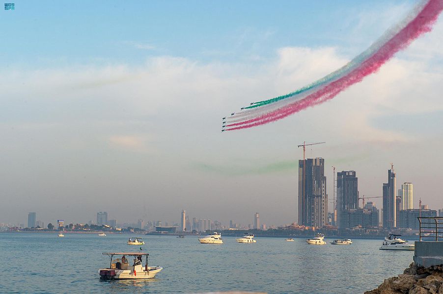 ويستمر فريق الصقور السعودية الجوية مع طائرات القوة الجوية الكويتية تقديم عروضهما غداً بهذه المناسبة الوطنية التي تشهدها دولة الكويت.