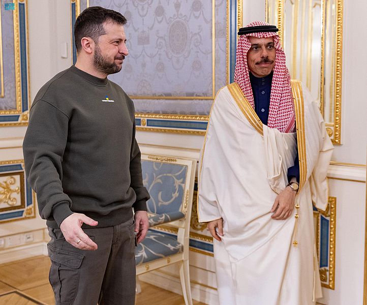 استقبل فخامة الرئيس فلاديمير زيلينسكي رئيس أوكرانيا، اليوم، صاحب السمو الأمير فيصل بن فرحان بن عبدالله وزير الخارجية، والوفد المرافق له، وذلك في مقر الرئاسة بالعاصمة كييف.