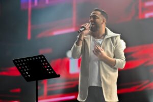 أكمل الفنان رامي صبري الأجواء الحماسية وصعد على المسرح على أصوات ترحيب الجمهور، وبدأ وصلته الغنائية بأغنية “أهد الدنيا” التي يحبها الجمهور، وهي أحد أشهر أغانيه، ثم قدم أغنية “أنا بعترفلك” وأغنية” كلمة” وأغنية “شطبنا” الحماسية.