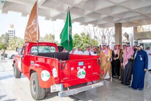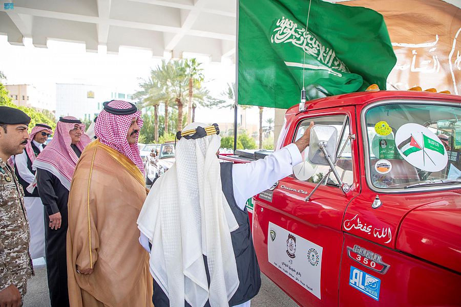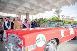 وشاهد سموه عرضاً للسيارات الكلاسيكية المشاركة بحضور مدير فرع وزارة الرياضة بالمنطقة أحمد روزي ثم انطلقت السيارات من أمام سموه مواصلة مراحل الرحلة في اتجاه القريات.