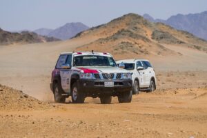 وقالت ميرهان بداية إنطلاقتها نحو المرحلة الأولى :” سعيدة جداً بهذه المشاركة وأيضاً مستعدة للمنافسة رغم قوة المشاركات في الفئة التي اشارك فيها”، وختمت كلامها بالشكر لشركة مناهل العالمية – نيسان على رعايتها ودعمها لي للمشاركة بهذا الرالي على متن سيارة نيسان باترول سفاري متمنية أن تنهيها بالوصول إلى منصة التتويج.