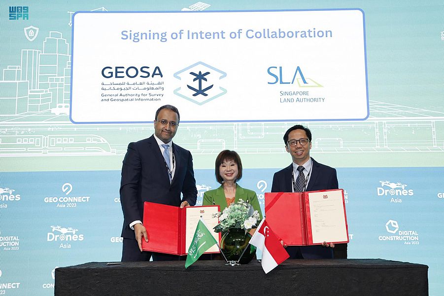 وقعت الهيئة العامة للمساحة والمعلومات الجيومكانية مذكرة مبدئية مع هيئة الأراضي السنغافورية SLA ؛ تمهيدًا لتعاون بين الجهتين وفق الإجراءات النظامية، بهدف تطوير البنية التحتية الجيومكانية الوطنية بالمركز الجيومكاني الوطني، ويشمل التعاون عدة مجالات منها؛ إدارة البيانات الجيومكانية الوطنية، وتطوير المنصة الجيومكانية الوطنية، وتبني الذكاء الاصطناعي الجيومكاني، تأتي هذه الخطوة في إطار الاستفادة من التجارب والممارسات العالمية المثلى جاء ذلك خلال مؤتمرGeconnect المنعقد في سنغافورة خلال الفترة من 14-17 مارس الجاري.