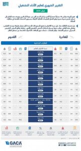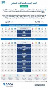 يذكر أن الهيئة العامة للطيران المدني تستند في تقييم أداء المطارات على أربعة عشر معياراً أساسياً لقياس الأداء، أبرزها أوقات انتظار المسافرين في إجراءات السفر، والوقت الذي يقضيه المسافر أمام سير الأمتعة ومناطق الجوازات والجمارك، علاوة على معايير تتعلق بذوي الإعاقة، وعدة معايير أخرى وفق أفضل الممارسات العالمية.