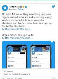 في التغريدة ، طلبت منصة التواصل الاجتماعي أيضًا من مستخدميها الدفع مقابل اشتراكات تويتر Blue إذا كانوا يريدون الاحتفاظ بعلامة الاختيار الزرقاء الخاصة بهم، ذكرت الشركة أيضًا أن الشركات ستحتاج أيضًا إلى الدفع مقابل علاماتها الزرقاء ويمكنها الاشتراك في برنامج “المنظمات التي تم التحقق منها”.