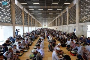 نظمت وزارة الشؤون الإسلامية ممثلة بالملحقية الدينية في سفارة خادم الحرمين الشريفين في جمهورية إندونيسيا مأدبة إفطار للصائمين بأكبر جامع في العاصمة جاكرتا؛ “جامع الاستقلال” الذي يعد من أكبر الجوامع في شرق آسيا، وذلك بحضور وزير التنسيق للشؤون السياسية والقانونية والأمنية بجمهورية إندونيسيا محمد محفوظ.