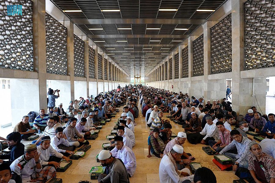 الملحقية الدينية بإندونيسيا تقيم إفطاراً للصائمين بجامع الاستقلال بجاكرتا