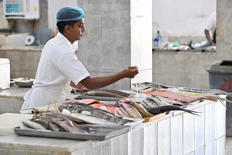 ورصدت عدسة “واس” وفرة المعروض من الأسماك وتنوّعه وكثرة مرتاديه , وسط رقابة مكثفة من فرع وزارة البيئة والمياه والزراعة بجازان ، للتأكد من تحقيق أعلى مستويات النظافة ومتابعة انضباط العمالة ومدى التزامهم بجميع الاشتراطات الصحية.