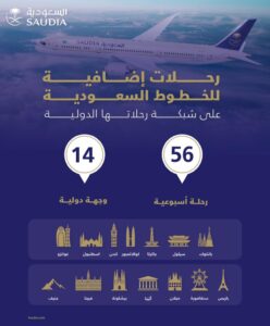 الخطوط السعودية تضيف (56) رحلة أسبوعية لـ (14) وجهة دولية