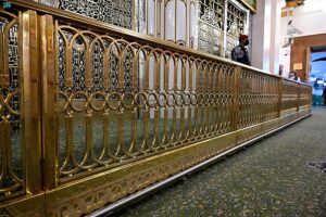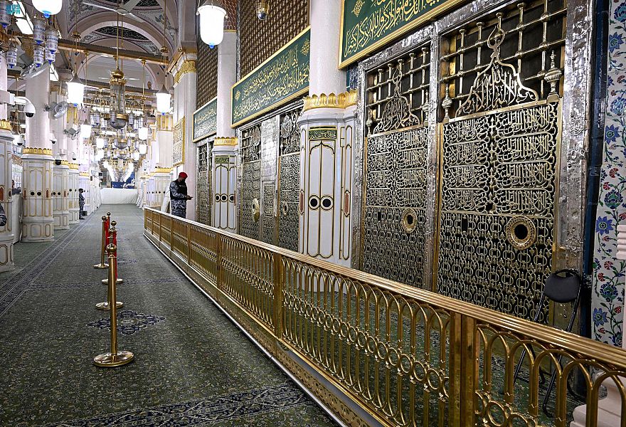 تدشين الحاجز النحاسي المذهب المحيط بالحجرة النبوية