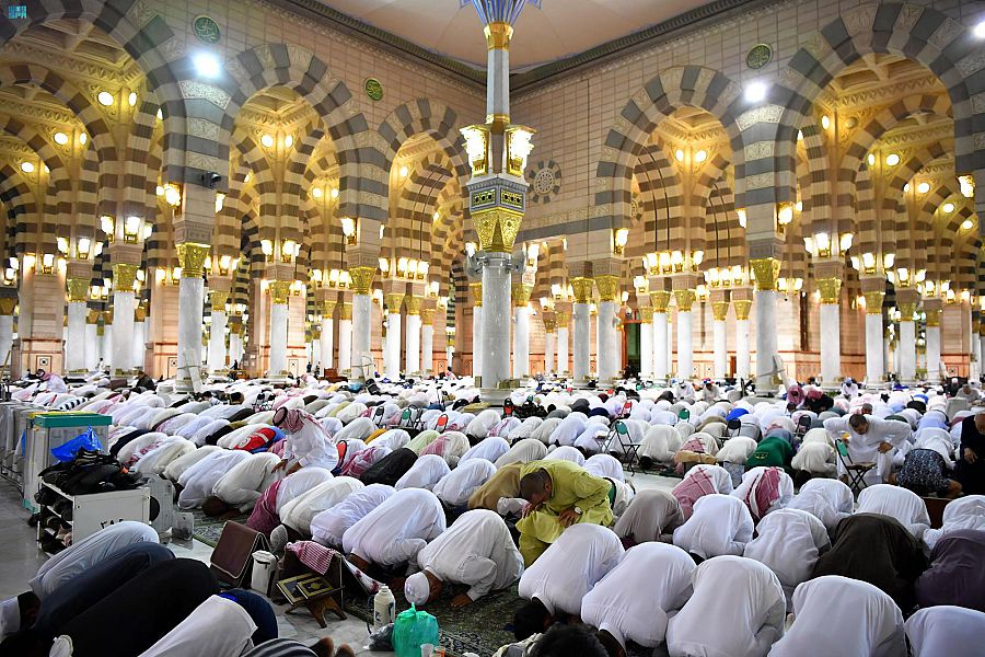 في أجواءٍ روحانية إيمانية يسودها الخشوع والاطمئنان امتلأت أروقة المسجد النبوي، بجموع المصلين لأداء صلاة التهجد ليلة ال ٢٧ من شهر رمضان المبارك.