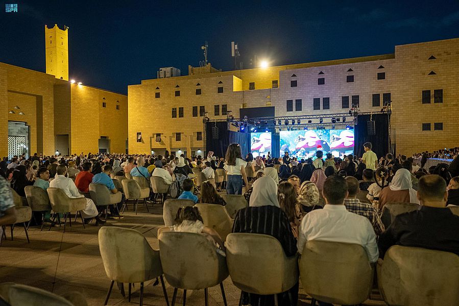 وشهدت الفعاليات في ساحة المصمك -أحد ساحات منطقة قصر الحكم-، نشاطات عدّة تضمّنت التزلج بالعجلات، وفنان يؤدي أعمالاً كوميدية متخذاً شكلاً من الدُمى المشهورة، وعروض أزياء تنكرية ملوّنة مختلفة، فيما شهدت منطقة العروض الموسيقية عرضاً حياً لمقطوعات موسيقية في جلسات مخصصة حول العازفين، وبائع البالونات بهوية العيد، إلى جانب ركن عالم الحلويات المكون من قسم مجسّمات الحلوى العملاقة ذات الألوان الزاهية المتواجدة بالممرات بشكلٍ إبداعي، وقسم الملاهي المصغّرة الذي يتضمن ألعاباً على شكل مجسمات مخصصة للأطفال.