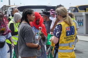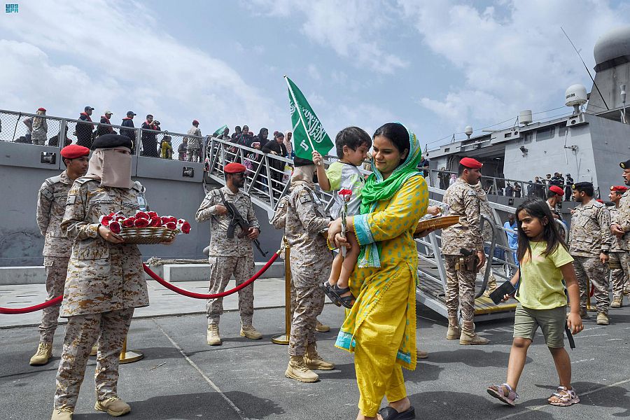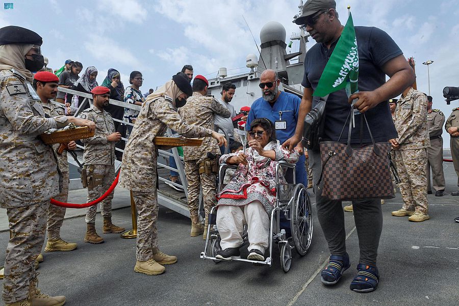استمراراً للجهود التي تبذلها المملكة العربية السعودية بتوجيهات من القيادة الرشيدة – أيدها الله – في عمليات الإجلاء من جمهورية السودان إلى المملكة، وصل إلى مدينة جدة صباح اليوم الجمعة 195 شخصاً من رعايا الدول الشقيقة والصديقة من الجنسيات التالية: (باكستان، وفلسطين، وتايلند، وموريتانيا، وسيريلانكا، والولايات المتحدة الأمريكية، وبولندا، والهند، والمملكة المتحدة، والنمسا، واندونيسيا، وكندا، والعراق، ومصر، وأستراليا، وسوريا)، حيث تم نقلهم من خلال سفينة جلالة الملك “مكة”، تمهيداً لتسهيل مغادرتهم إلى بلدانهم، وبذلك يصل إجمالي من تم إجلاؤهم من السودان منذ بدء عمليات الإجلاء نحو 2991 شخصاً (119 مواطناً سعودياً، و2872 شخصاً ينتمون لـ 80 جنسية).