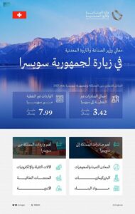 ومن المقرر أن يشارك معاليه خلال زيارته إلى سويسرا في المنتدى الاقتصادي العالمي، ويلتقي عدداً من المسؤولين الحكوميين, بالإضافة إلى زيارة عدد من الشركات السويسرية.