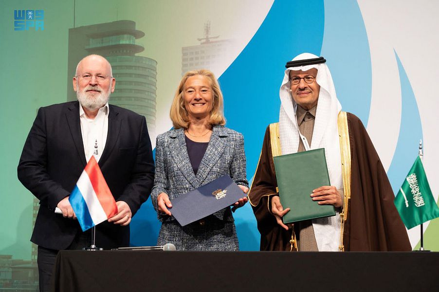 في إطار الزيارة التي قام بها صاحبُ السموِّ الملكي الأمير عبدالعزيز بن سلمان بن عبدالعزيز، وزير الطاقة إلى هولندا، لحضور مؤتمر القمة العالمية للهيدروجين لعام 2023م، الذي انعقد في مدينة روتردام الهولندية، خلال الفترة من 19 إلى 20 شوال 1444هـ، الموافق من 10 إلى 11 مايو 2023م، وقَّع سموُّه مع معالي وزيرة الشؤون الاقتصادية وسياسات المناخ الهولندية ميكي أدريانسينس؛ مذكرة تفاهم بين المملكة وهولندا في مجال الطاقة.