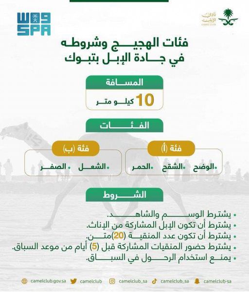 نادي الإبل يعلن بدء التسجيل للمشاركة في مهرجان “جادّة الإبل” بتبوك