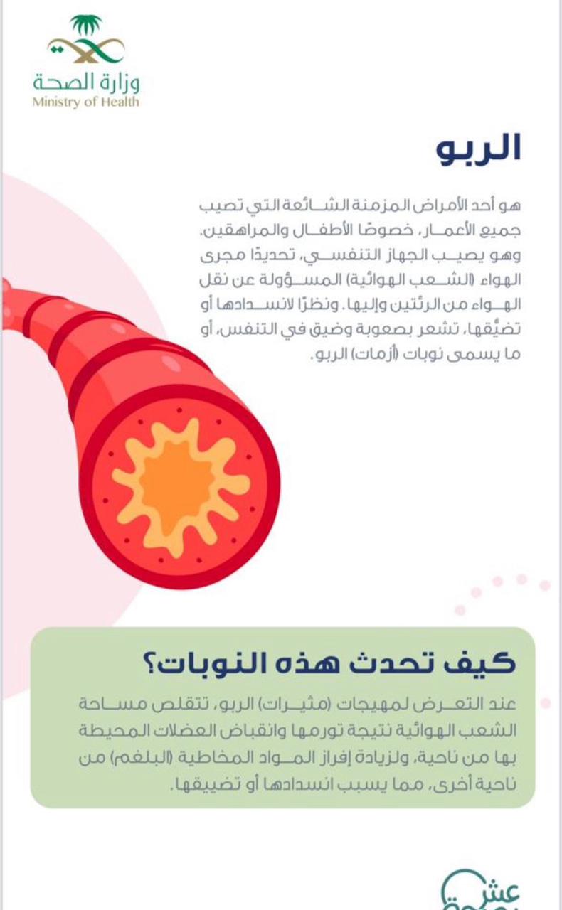 بدورها أكدت الأستاذة أمل الجعيد على أهمية هذا التوجه من الخدمات التوعوية الصحية المقدمة مما يساهم في نشر ثقافة التوعية والتثقيف الصحي بأسرع وقت وأقل جهد في كيفية التعامل مع مرض الربو.