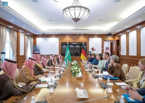 وجرى خلال الاستقبال، استعراض العلاقات السعودية الألمانية المتينة، وسبل تعزيزها وتطويرها بما يخدم المصالح المشتركة، بالإضافة إلى مناقشة تكثيف التنسيق الثنائي في العديد من القضايا الإقليمية والدولية، لاسيما في المجالات السياسية والأمنية والاقتصادية منها.