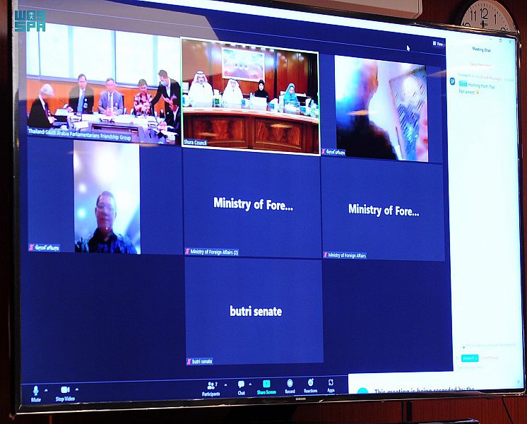 عقدت لجنة الصداقة البرلمانية السعودية التايلندية بمجلس الشورى برئاسة عضو المجلس رئيس اللجنة معالي الأستاذ أسامة بن عبدالعزيز الربيعة اجتماعاً (عبر الاتصال المرئي), مع نظيرتها في البرلمان التايلندي برئاسة رئيس لجنة الصداقة البرلمانية التايلندية السعودية براين جونتونج , بحضور أعضاء مجلس الشورى أعضاء اللجنة.