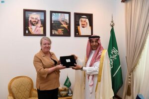وقدمت السفيرة خلال استقبال مدير فرع وزارة الخارجية بمنطقة مكة المكرمة مازن بن حمد الحملي، بفرع الوزارة بجدة , لها اليوم، الشكر لخادم الحرمين الشريفين الملك سلمان بن عبدالعزيز آل سعود، ولصاحب السمو الملكي الأمير محمد بن سلمان بن عبدالعزيز ولي العهد رئيس مجلس الوزراء – حفظهما الله -، لحرصهما على سلامة الرعايا الغربيين ورعايا الدول الأخرى الذين تم إجلاؤهم من السودان.