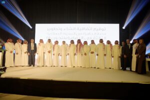 وتضمن حفل التدشين، توقيع اتفاقية إنشاء وتطوير مصانع جاهزة في المدينة الصناعية الثالثة بالدمام ضمن مشروع”منتجون 5″.