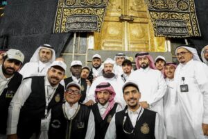 رفعت الرئاسة العامة لشؤون المسجد الحرام والمسجد النبوي – ممثلة بوكالة مجمع الملك عبدالعزيز لكسوة الكعبة المشرفة- اليوم،الجزء السفلي من كسوة الكعبة المشرفة بمشاركة معالي الرئيس العام لشؤون المسجد الحرام والمسجد النبوي الشيخ الدكتور عبدالرحمن السديس، جريًا على العادة السنوية بارتفاع ثلاثة أمتار وفق الخطة المعتمدة لموسم الحج، فيما تمت تغطية الجزء المرفوع بإزار من القماش القطني الأبيض بعرض مترين تقريبًا من الجهات الأربع.