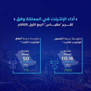 هيئة الاتصالات والفضاء والتقنية تصدر تقرير “مقياس” الربع الأول من عام 2023م لمؤشرات سرعة الإنترنت وسرعة الوصول للمحتوى الرقمي في المملكة