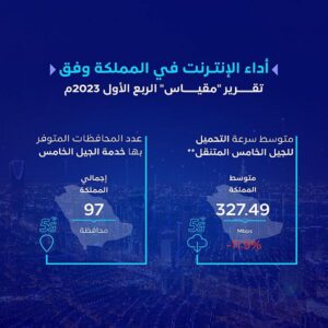 وعلى صعيد انتشار شبكات الجيل الخامس، فقد أظهر تقرير “مقياس” وصول عدد المحافظات المغطاة بخدمات الجيل الخامس إلى 97 محافظة على مستوى المملكة، بمتوسط سرعة للجيل الخامس المتنقل يصل إلى 327.49 ميجابت في الثانية.