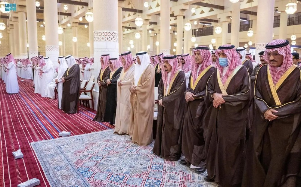 وأدى الصلاة مع سموه صاحب السمو الملكي الأمير محمد بن سعد بن عبدالعزيز وصاحب السمو الأمير فهد بن عبدالله بن محمد بن عبدالرحمن وصاحب السمو الملكي الأمير سعود بن سعد بن عبدالعزيز وصاحب السمو الملكي الأمير خالد بن سعد بن عبدالعزيز وصاحب السمو الملكي الأمير خالد بن بندر بن عبدالعزيز مسشار خادم الحرمين الشريفين وصاحب السمو الملكي الأمير متعب بن عبدالله بن عبدالعزيز وصاحب السمو الملكي الأمير فيصل بن خالد بن عبدالعزيز مستشار خادم الحرمين الشريفين وصاحب السمو الملكي الأمير سلطان بن سلمان بن عبدالعزيز مسشار خادم الحرمين الشريفين وصاحب السمو الأمير أحمد بن عبدالله بن عبدالرحمن وصاحب السمو الملكي الأمير عبدالعزيز بن ماجد بن عبدالعزيز وصاحب السمو الأمير عبدالعزيز بن فهد الفيصل بن فرحان وصاحب السمو الملكي الأمير مشاري بن سعود بن عبدالعزيز وصاحب السمو الأمير تركي بن فهد بن محمد بن عبدالرحمن آل سعود وصاحب السمو الأمير عبدالرحمن بن عبدالله الفيصل آل فرحان محافظ المجمعة وصاحب السمو الملكي الأمير تركي بن عبدالله الفيصل وصاحب السمو الملكي الأمير محمد بن فيصل بن بندر بن عبدالعزيز، وعدد من أصحاب السمو الأمراء وجمع من المواطنين.