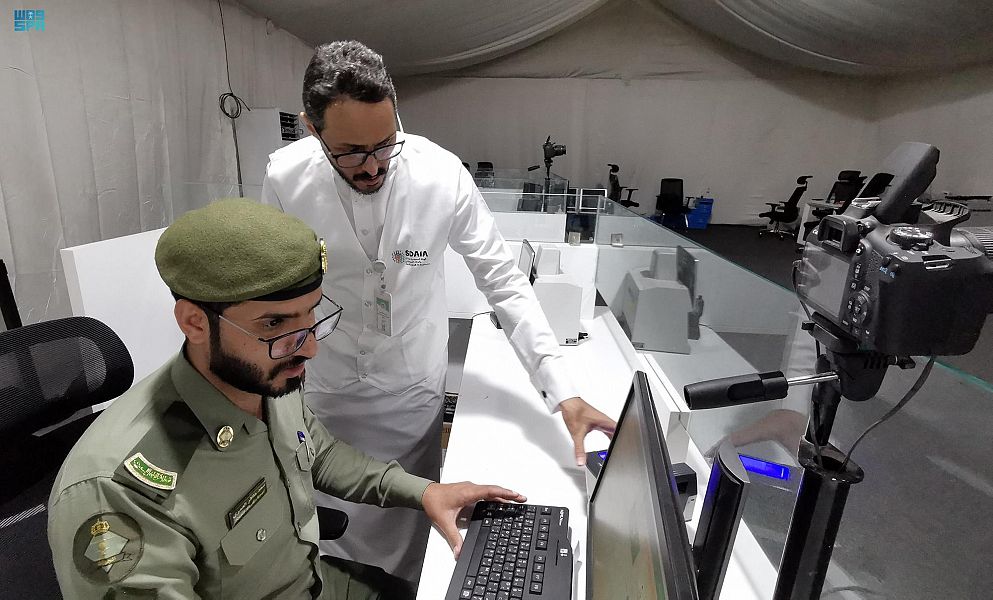 وتقدم الهيئة السعودية للبيانات والذكاء الاصطناعي ( سدايا ) ممثلاً بذراعها التشغيلي فرع مركز المعلومات الوطني بمنطقة نجران خدماتها من خلال تجهيز وتركيب وتشغيل صالات الدخول والمغادرة الجديدة بعدد ٤٠ محطة عمل في وقت وجيز، مدعمة بفنيين مناوبين على مدار الساعة لضمان تسهيل دخول وخروج ضيوف الرحمن.
